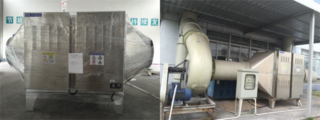 可選擇較為適宜的處理方案及相關(guān)設(shè)備。依據(jù)現(xiàn)場實踐情況分析,現(xiàn)采用廢氣處理方法:將噴漆發(fā)作的廢氣用搜集設(shè)備搜集,經(jīng)過主管道送入漆霧過濾系統(tǒng)和低溫等離子裂解設(shè)備/光催化氧化設(shè)備,較后經(jīng)過后端風(fēng)機抽風(fēng)高空合格排放。
